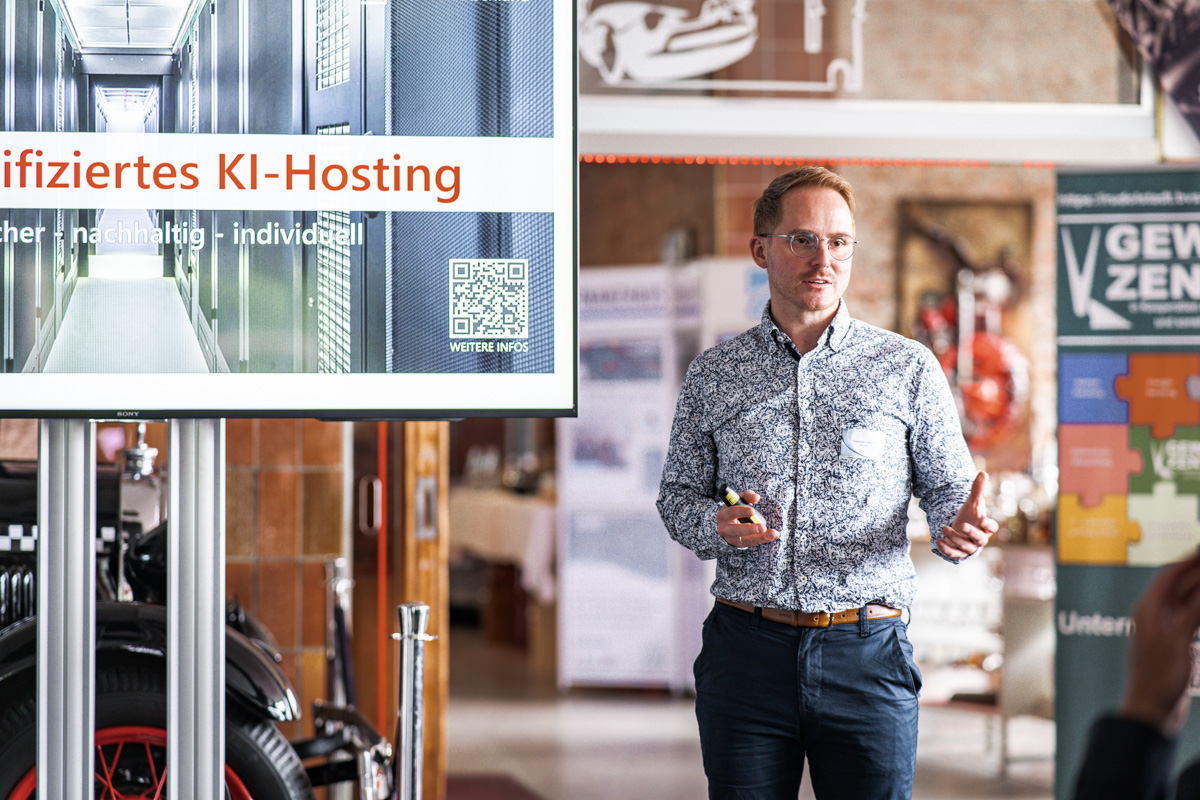 Der Schirmherr, Dr. Ralf Bauer, Präsident der IHK Ostthüringen, setzte mit seiner Ansprache wertvolle Impulse und hob die Bedeutung von KI im Mittelstand hervor. Thematisch spannte sich der Bogen von KI im Büromanagement über sensorische KI-basierte Signalgebung in der Produktion bis hin zur effizienten Prozessüberwachung und Ressourcenersparnis in Unternehmen. Ebenfalls im Fokus standen wichtige rechtliche und sicherheitsrelevante Aspekte, die lebhafte Diskussionen auslösten.